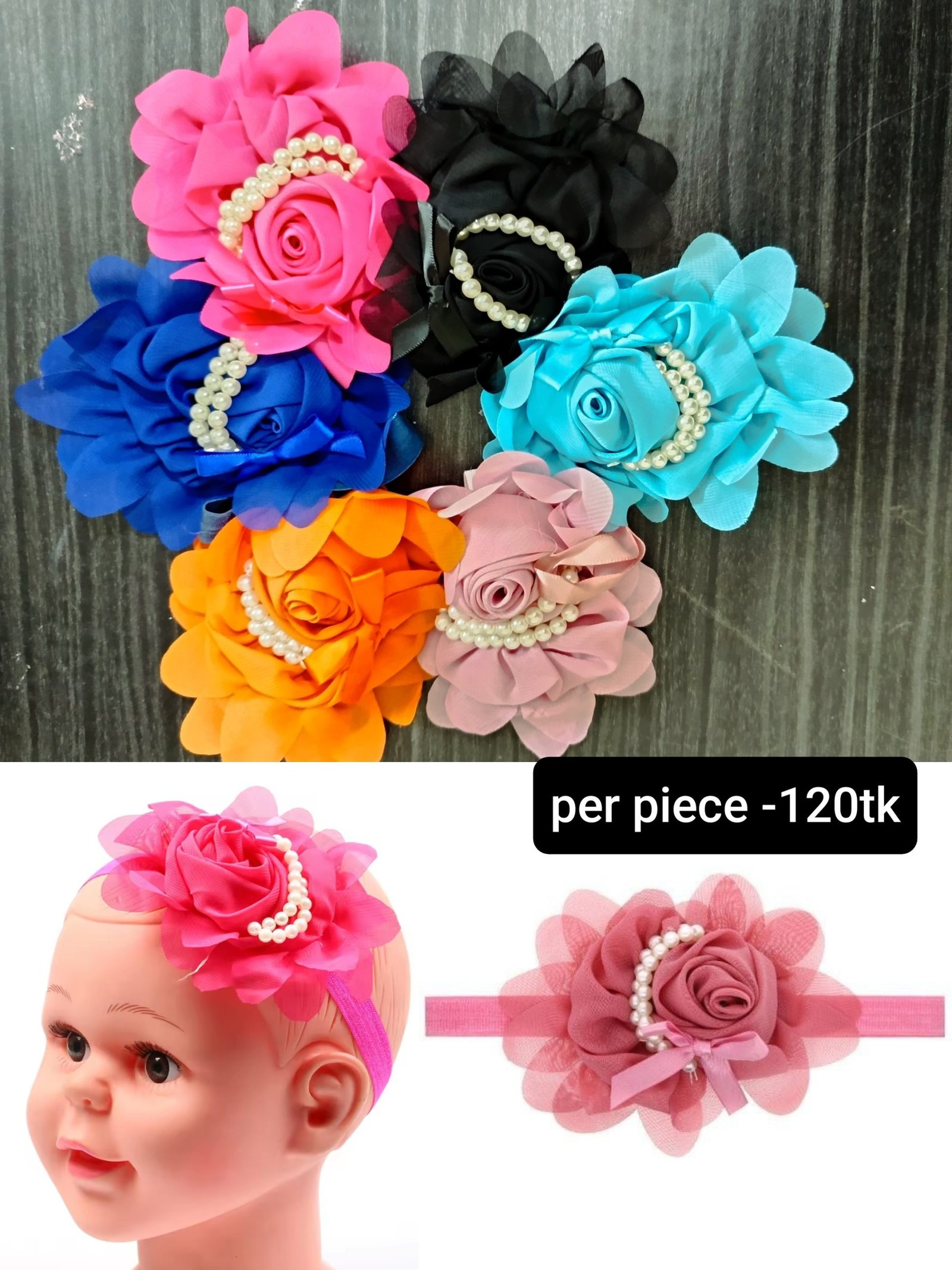 - Baby girls beautiful fabric headbands with pearl,